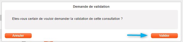 Vous pouvez donc demander la validation de fin de saisie de consultation en cliquant sur le bouton "demande de validation" situé en bas à droite de l'écran :